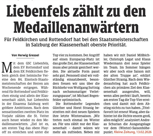 Während für den EV Rottendorf/Seiwald mit drei neuen Spielern im Team nur ein Ziel zählt – der Klassenerhalt, will der GSC Liebenfels erneut ganz vorne mitmischen. Der EK Deurotherm Feldkirchen komplettiert das Kärntner Trio nach dem Wiederaufstieg.