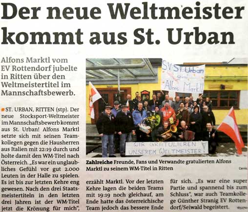 Bei den österreichischen Mixedmeisterschaften in Köflach/St war der EV Rottendorf wieder einmal eine Klasse für sich. Gold und Silber gingen an den Kärntner Verein aus Feldkirchen.Bronze ging an den SV Aschau Lang-Baustoffe aus Tirol vor dem ESV Union Passail aus der Steiermark.