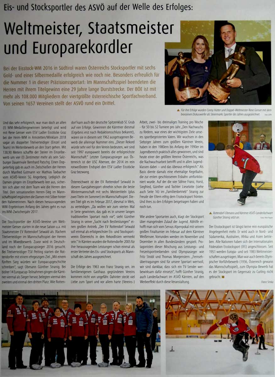 Am vergangenen Samstag wurden in der Karl-Feichter-Stocksporthalle in Köflach die 33. Österreichischen Meisterschaften im Stocksport für Mixed-Mannschaften ausgetragen. Dabei kam es zu einem zweifachen Kärntner Erfolg für die beiden Mannschaften des EV Rottendorf, die Bronzemedaille ging nach Tirol zum SV Aschau.