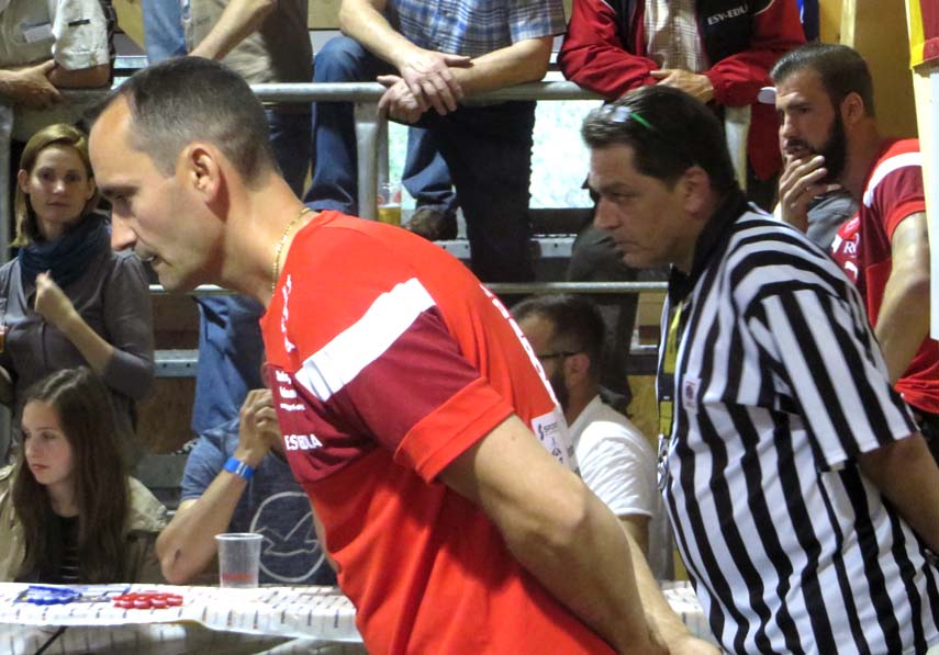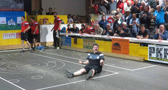 Die Stimmung in der Halle steigt, Edla beginnt zu schwächeln und Rottendorf nutzt das Momentum um auf 3:5 zu verkürzen. Edla bringt Michael Bauer in das Spiel und der „Grizzly“ liefert eine fehlerfreie, emotionale Leistung ab. Dennoch schien der Sieg für die Kärntner im letzten Durchgang bereits sicher, aber bei 11:0 und Nachspiel konnte Rottendorf in der vierten Kehre den Sack nicht zumachen. Edla verkürzt vor der letzten Kehre auf 8:11 und es kommt zum großen Showdown. Spieler für Spieler bewältigen unter großem Druck ihre Versuche, bis nur noch Horst Stranig übrig ist. Die Spannung in St.Urban ist greifbar, jede Bewegung und Geste bis zur „Schussabgabe“ des „Linken“ wird beobachtet. Ein Volltreffer bringt den Tempel in St.Urban zum Beben und Rottendorf das Unentschieden.