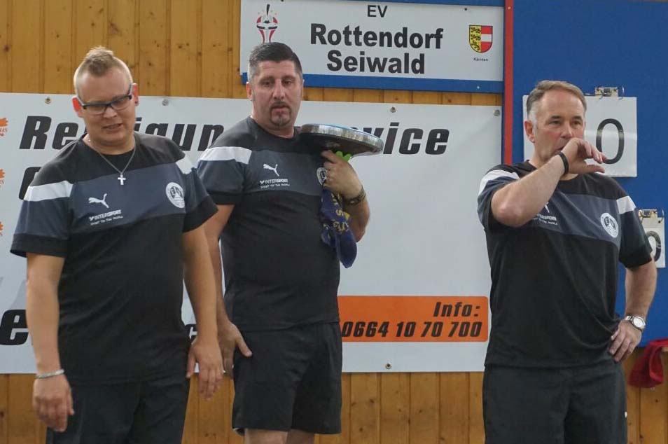 350 Zuseher in der Karl-Fechter Stocksporthalle sorgten für gute Stimmung und am Ende einen knappen, aber nicht unverdienten Erfolg für die Gäste aus Kärnten. Ausschlaggebend war wohl das Comeback von Andreas Spendier, der seine Blinddarm-OP gut überstanden hat und mit Fortdauer der Partie immer besser wurde. Alfons Marktl und Horst Stranig spielten auch in gewohnt guter Form, Markus Wallner war bei einigen Abgaben spürbar nervös, konnte aber in den entscheidenden Momenten immer wieder punkten. Die Köflacher machten die gröberen Fehler, hätten gerne einen Punkt mitgenommen. Am Ende waren die Rottendorfer um zwei Punkte besser. Horst Stranig lieferte wie immer sein Show-Programm, dass nicht jedem Stocksportfan gefällt. Diesmal hatte er bei seiner letzten Stockabgabe ein Folgetonhorn als Begleitmusik hinnehmen müssen.
