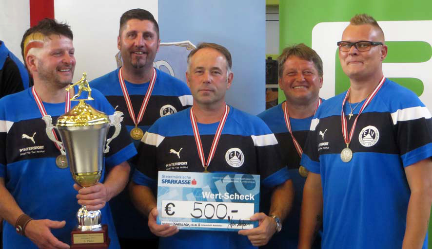 Damit war wahrlich nicht zu rechnen. Gegenüber dem Vorjahr, als man den dritten Platz holte, hatte sich die Mannschaft total verändert. Insgesamt drei Spieler waren diesmal nicht dabei, und kurz vor dem Bewerb waren zwei Spieler gesundheitlich angeschlagen. Aufgrund des immer größer werdenden Spielerengpasses wurde sogar Franz Stranig aus der „Eisstocksport-Pension“ zurückgeholt. Aber wenige Stunden vor Meisterschaftsbeginn meldeten sich die beiden Spieler einsatzfähig. Die Derbyniederlage gegen Glanhofen im ersten Spiel war wohl der Weckruf zur rechten Zeit, denn danach spielten sich die Jungs in „Rage“ und zogen in der Gruppe nach 9 Siegen hintereinander auf und davon.