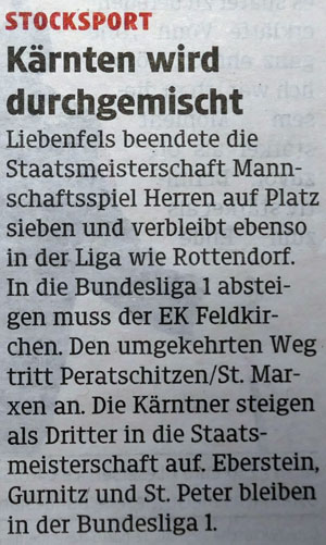 Die drei Neuen kämpften sich in die Meisterschaft hinein, speziell am 1. Tag war klar ersichtlich das der Sprung von der zweithöchsten Liga in Kärnten in die höchste Liga Österreichs ein (zu)großer war.